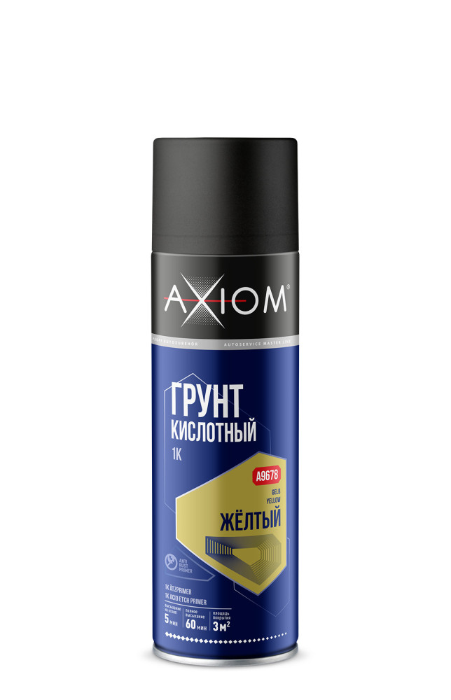 Высококачественный профессиональный однокомпонентный быстросохнущий кислотный протравливающий грунт AXIOM® A9678 предназначен для подготовки поверхности деталей автомобилей при ремонтной окраске. Предотвращает образование подплёночной коррозии. Повышает адгезию к любым типам металлических поверхностей, в том числе к алюминию, оцинкованной и нержавеющей стали.